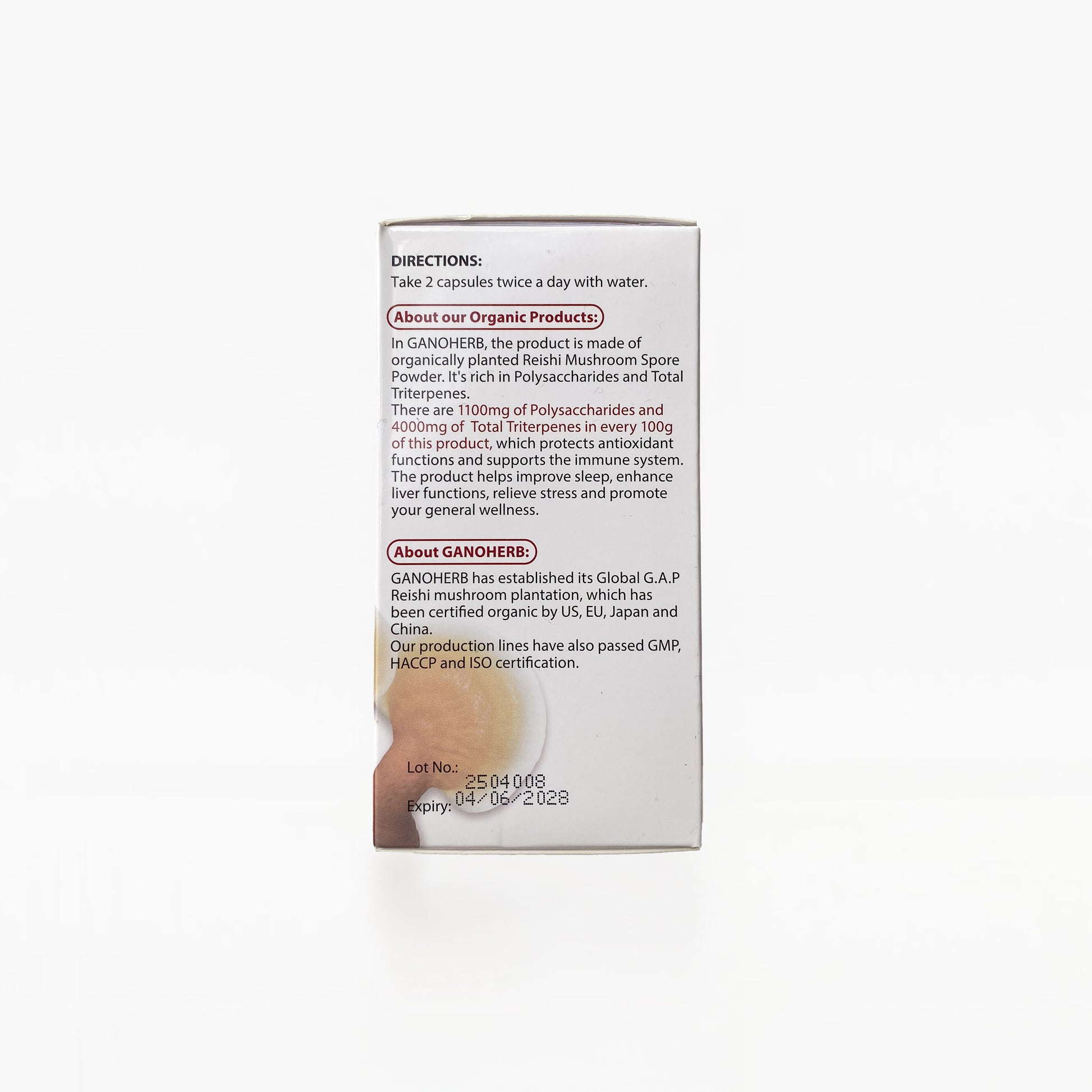 Each capsule delivers a concentrated dose of triterpenes, polysaccharides, and trace micronutrients that work synergistically to enhance immune function, liver detoxification, cellular repair, energy, and stress resilience. Reishi has been treasured for over 4,000 years in Traditional Chinese Medicine, known as the “Mushroom of Immortality” for promoting balance, vitality, and longevity. Chinaherbs product is derived from Red Reishi (Ganoderma lucidum) - the gold standard in both TCM and modern clinical research. With 4000 mg of triterpenes and 1100 mg of polysaccharides per 100 g, Chinaherb’s formula delivers strength and purity unmatched by current available products.