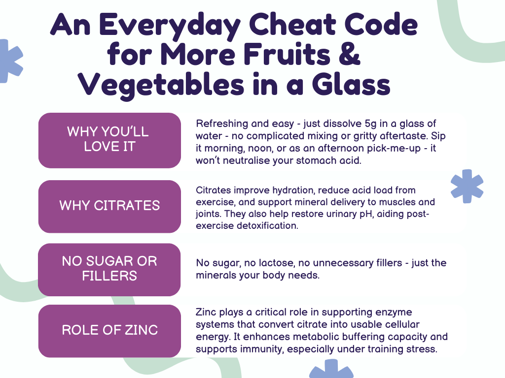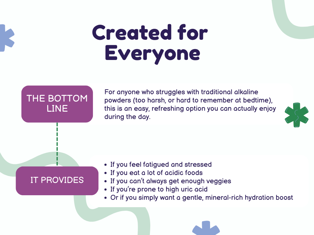 Take it once daily, at any time, to help reduce acidity. It promotes a balanced acid-alkaline level, enhances metabolism, and aids in preventing muscle cramps.