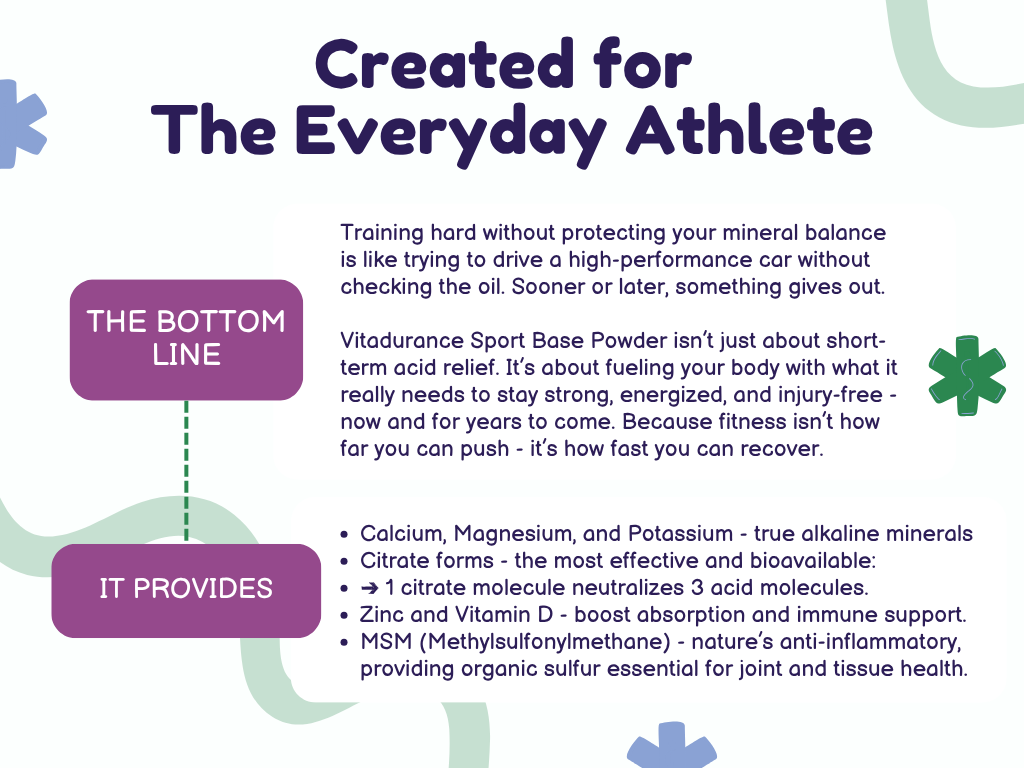 alkalizing minerals help neutralize acids produced by metabolism and intense activity.